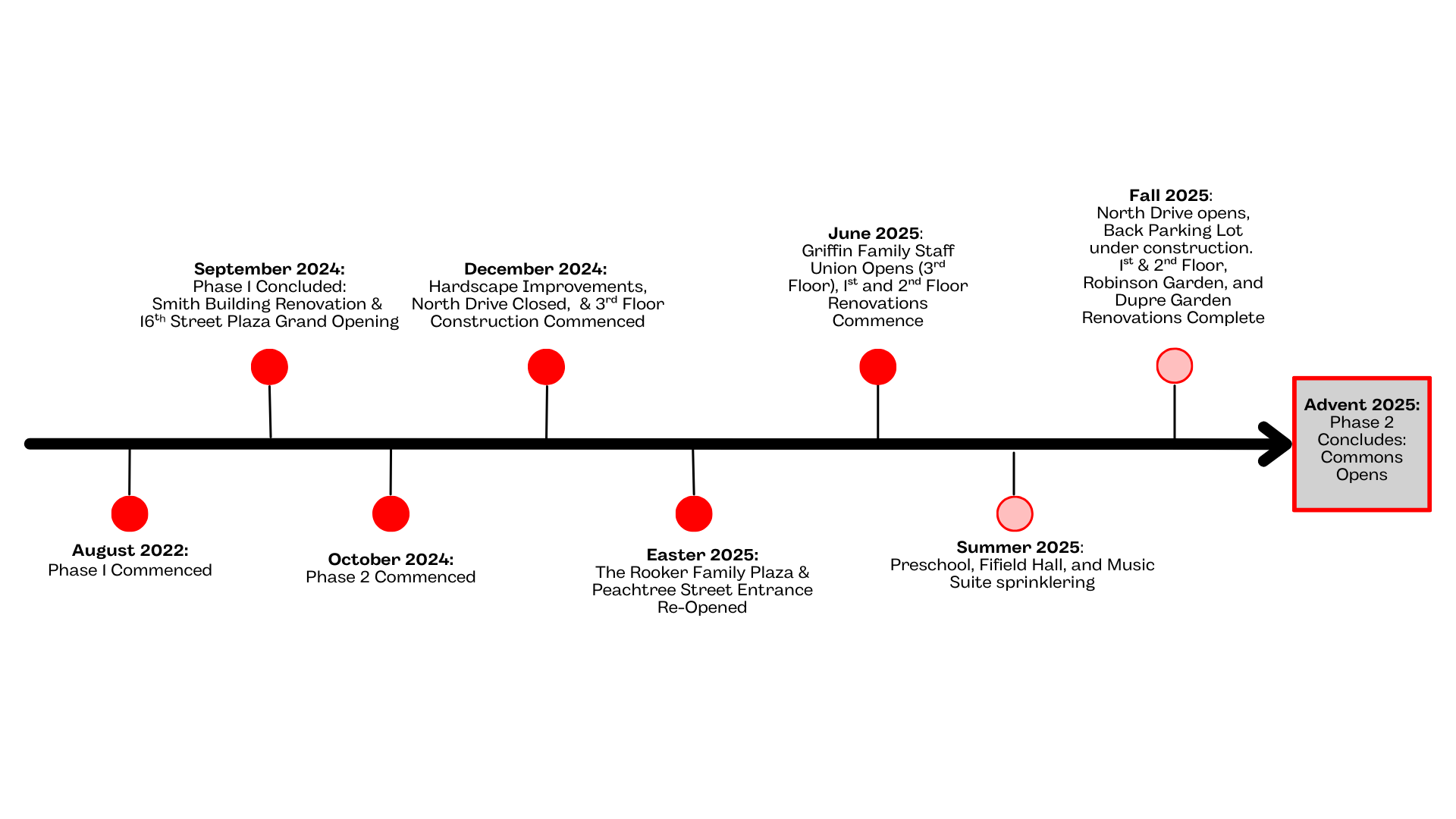 Phase Two is under construction and advancing rapidly. One highlight of the spring was Easter Sunday’s reopening of the historic Peachtree Street entrance, now the Rooker Family Plaza, welcoming families back to a beloved gathering space.